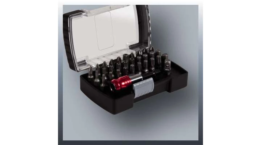 Tartozék egy 32 részes bit-box is, mely az összes járatos csavarbehajtó bitet tartalmazza.